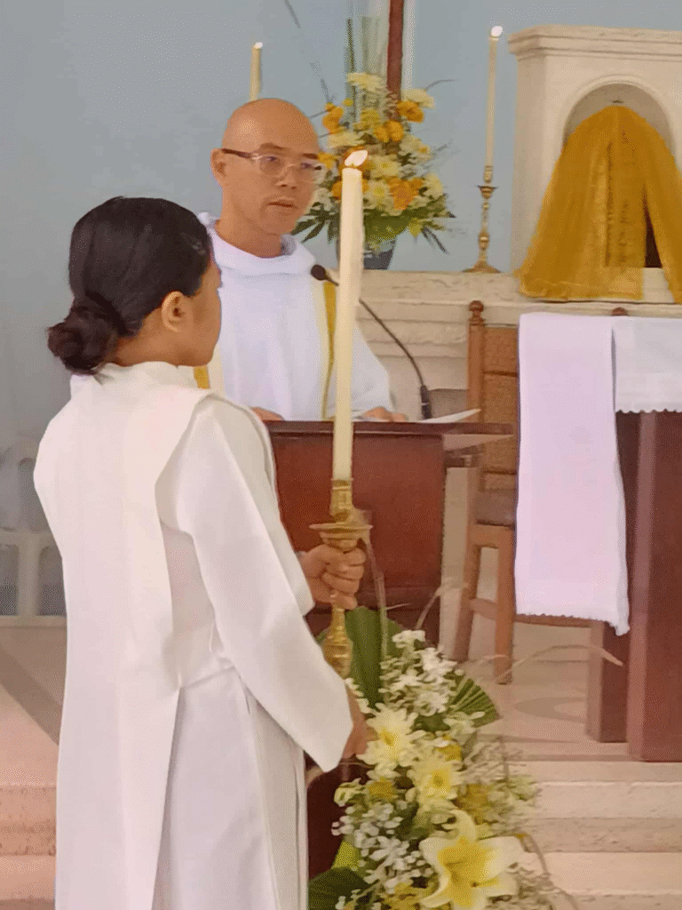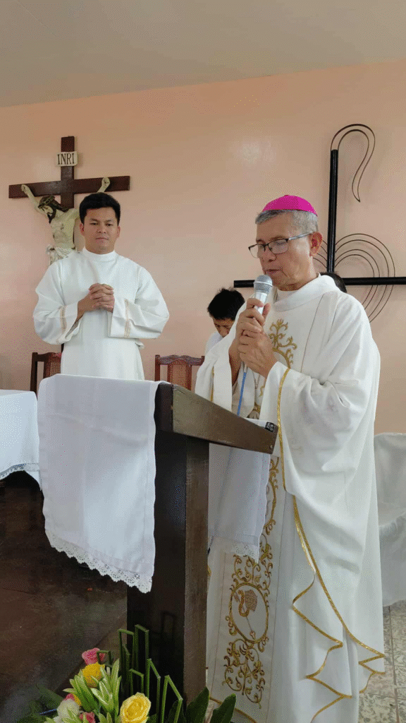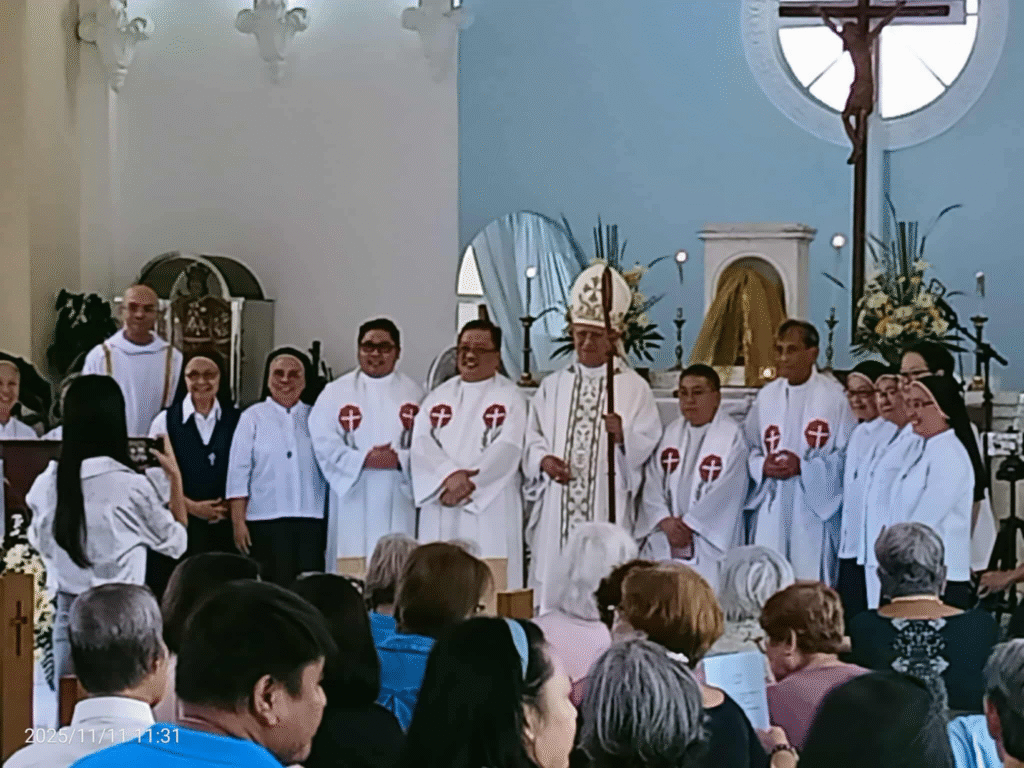 In Virac, where power was still unavailable and flights were grounded, one sister was unable to return home. Still, encouraged by partners in mission and powered by generators, the Mass went on. Food was shared among attendees and extended to nearby families affected by the storm, embodying the contemplatives’ quiet, compassionate witness. The apostolic sisters from Legaspi convent and sisters from other congregations were present. Bishop Louie Occiano presided and was joined by other priest friends.