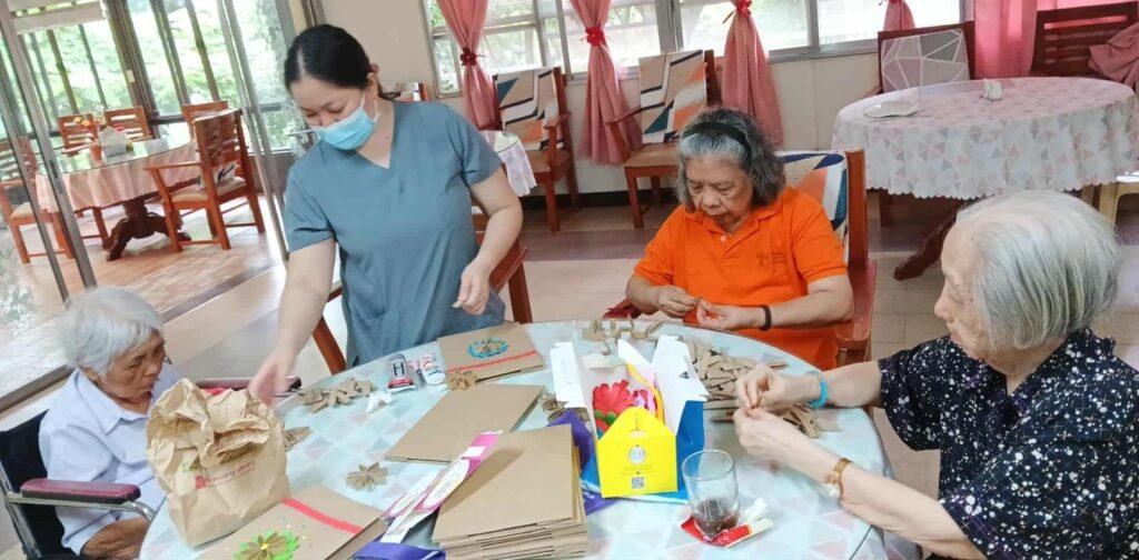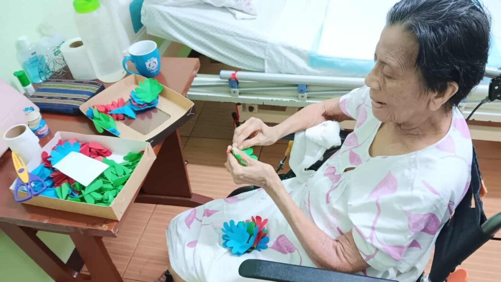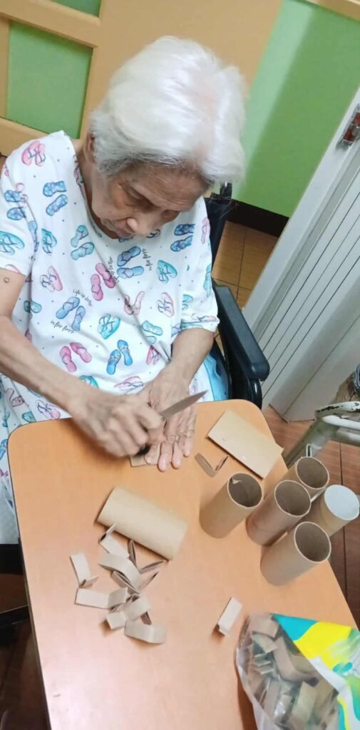 What began as art therapy was transformed into something practical and meaningful. With the help of their caregivers, the sisters turned trash into treasure by creating Christmas bags beautifully decorated with flowers made from toilet paper rolls. It was truly the work of many hands—folding manila paper, flattening and cutting toilet rolls, clipping and shaping them into flowers, cutting colorful art paper for backgrounds, spreading glitter, and attending to many other small details. These Christmas bags are prepared for the Province’s “signature” gifts for benefactors and friends—including doctors who patiently and lovingly care for the sisters.